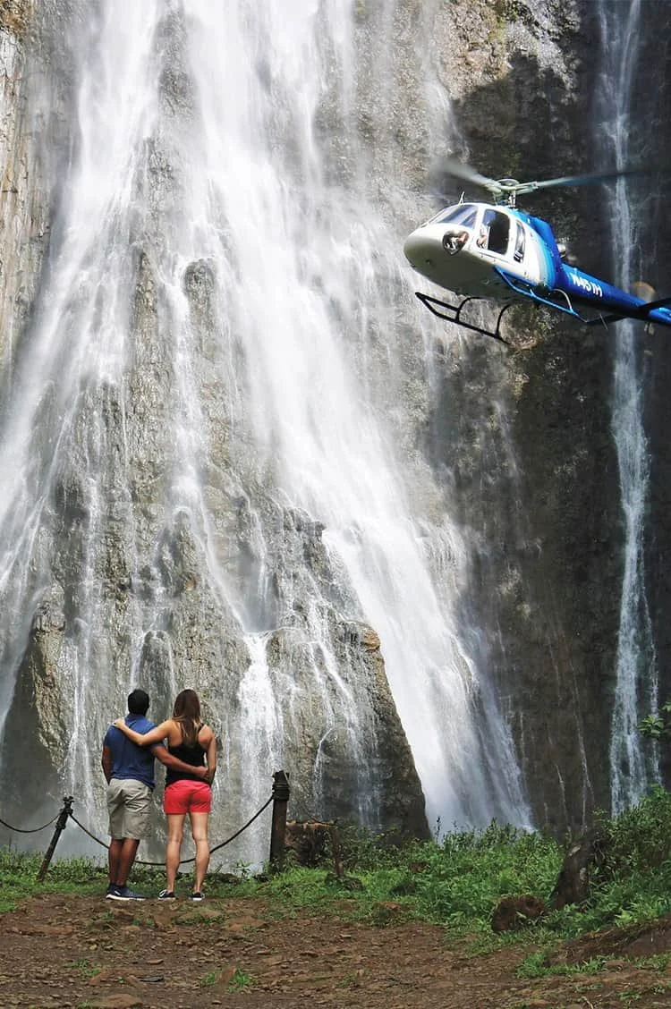 Kauai’s interior is a lush tapestry of rainforest canopies, mist-filled valleys, and cascading waterfalls. From the air, couples see the island’s wild heart—places that feel private, ancient, and untouched.